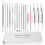 KINDS ANTI-SLIP DESIGN AND UNIQUE PACKAGE – 16 PCS blackhead extractor with a metal box, easy to organize storage and carry at any time, both clean and convenient. This blackhead extractor kits use a non-slip handle, which help you to stable control it to use and precision to avoid damage to the skin.