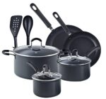 Premium Material: Heavy gauge hard-anodized aluminum cookware set with fast and even heat distribution and more durable and resists corrosion what’s more it won’t react to acidic foods