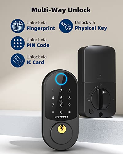 Front Door Lock Set: Zomnua keypad door lock with handle is made of heavy duty Zinc Alloy, which can last a long life, not easy to break! Fingerprint door lock with handle, you don’t need to buy an extra front door handle to go with the deadbolt