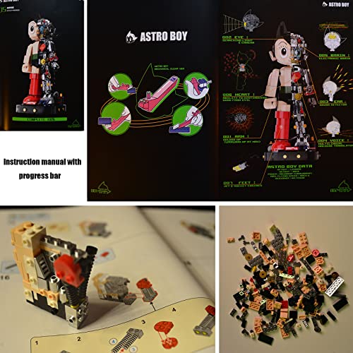 【🎁Unique mecha half body design💕】This perspective mecha building block Astro Boy Building Kit is mecha-half body design-official licensed by Tezuka Production.We designed this Astro Boy building kit to celebrate Astro Boy’s 70th anniversary.Gorgeous transparent parts show the internal details, each particle has been carefully polished, 30%+ Handmade metallic paint part, printed pieces instead stickers.