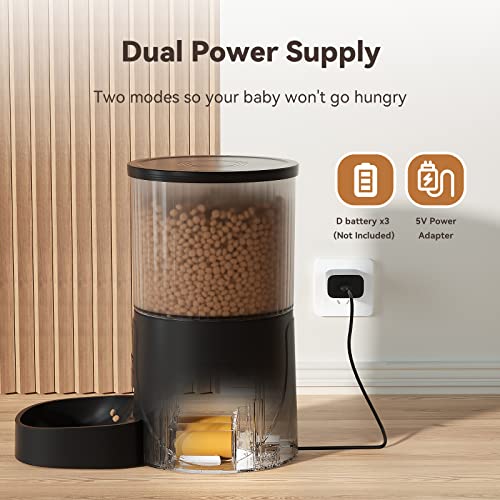 ✅Dual Power Mode:Our automatic pet feeder is powered by a power adapter and 3 D-size batteries(not included), which ensures that your pets get fed even in a power outage. Recommended using both the battery and adapter in case any of the power is cut off.